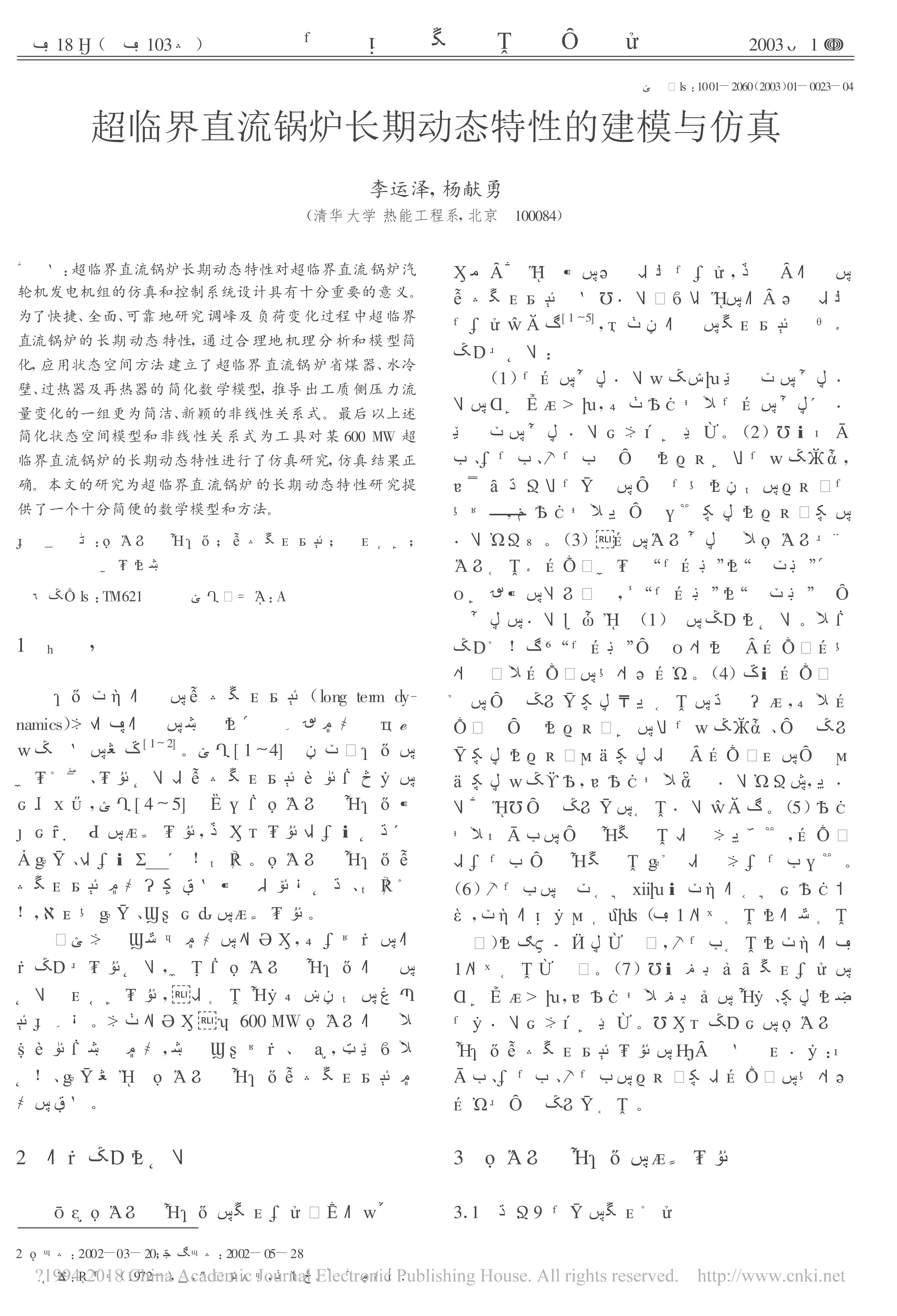 .超临界直流锅炉长期动态特性的建模与仿真[J].热能动力工程,2003,(1):