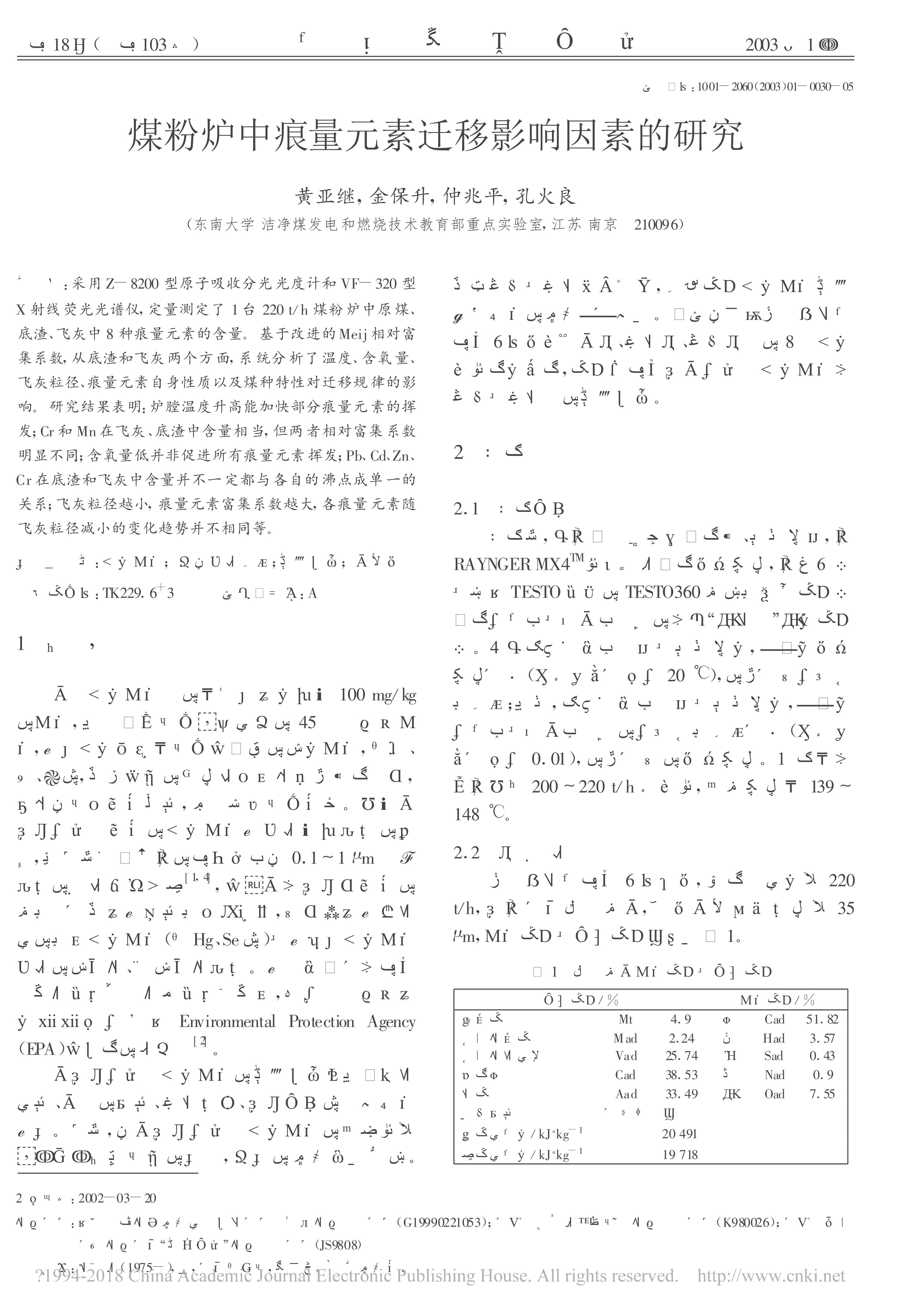 .煤粉炉中痕量元素迁移影响因素的研究[J].热能动力工程,2003,(1):