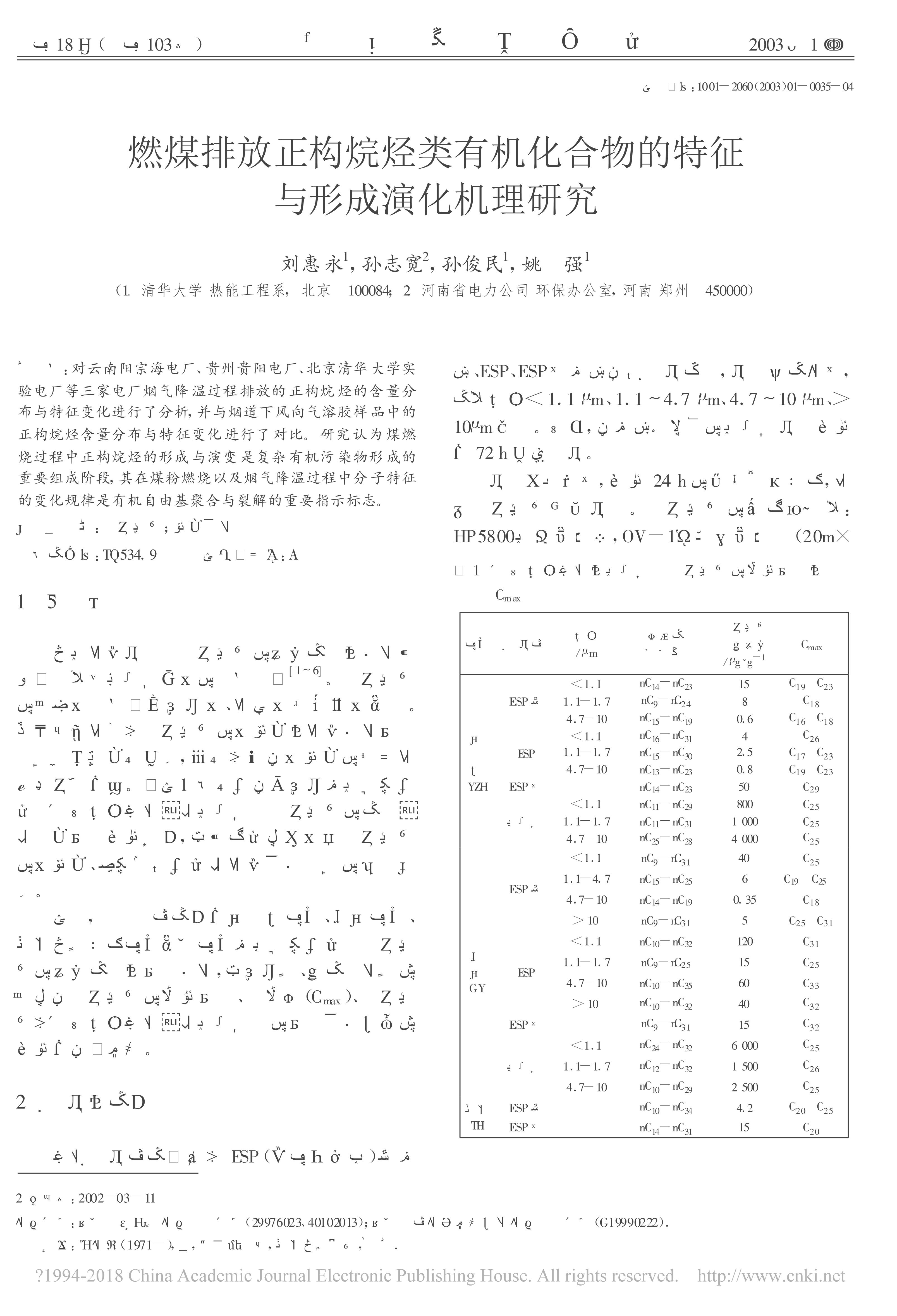 .燃煤排放正构烷烃类有机化合物的特征与形成演化机理研究[J].热能动力工程,2003,(1):