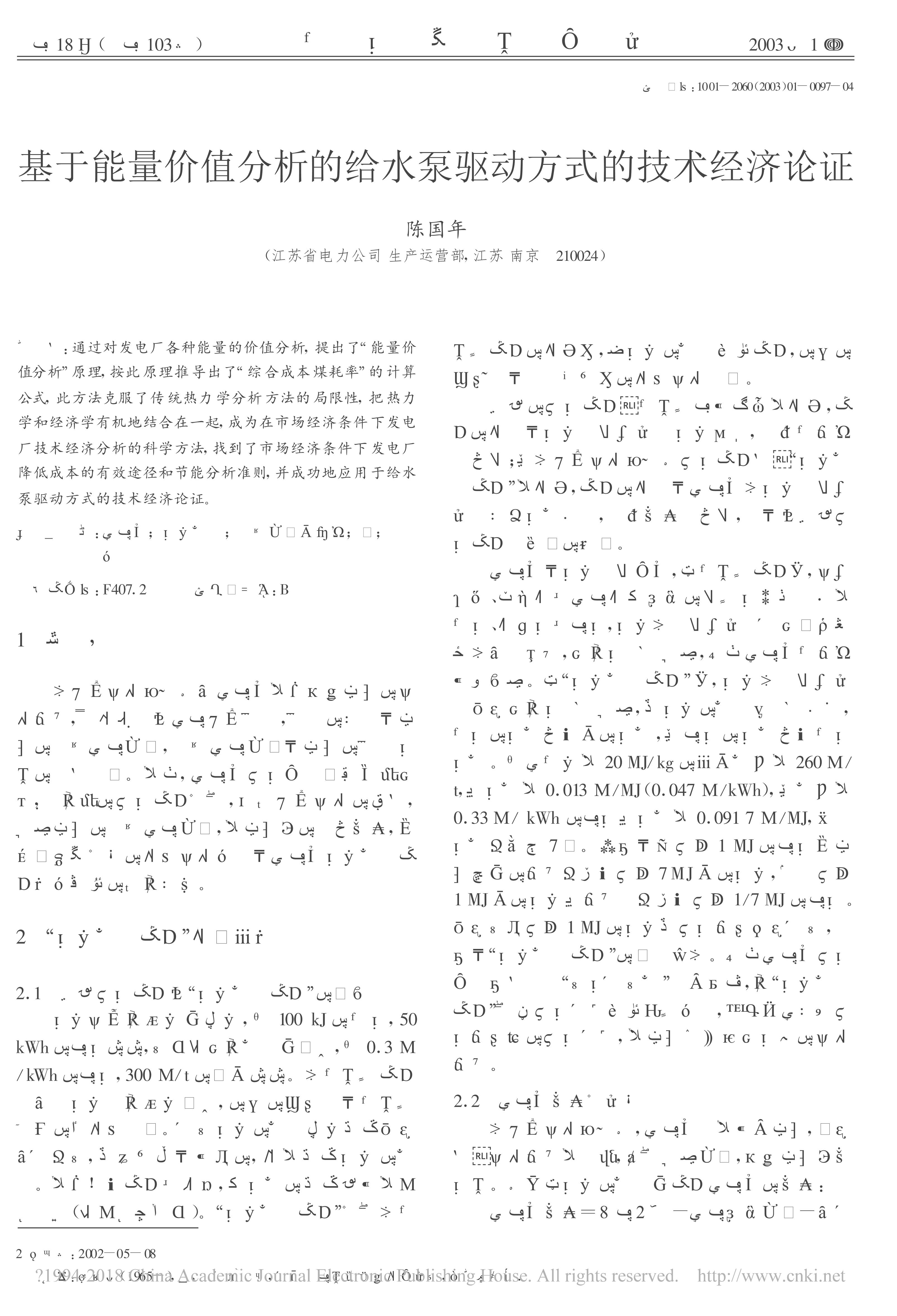 .基于能量价值分析的给水泵驱动方式的技术经济论证[J].热能动力工程,2003,(1):