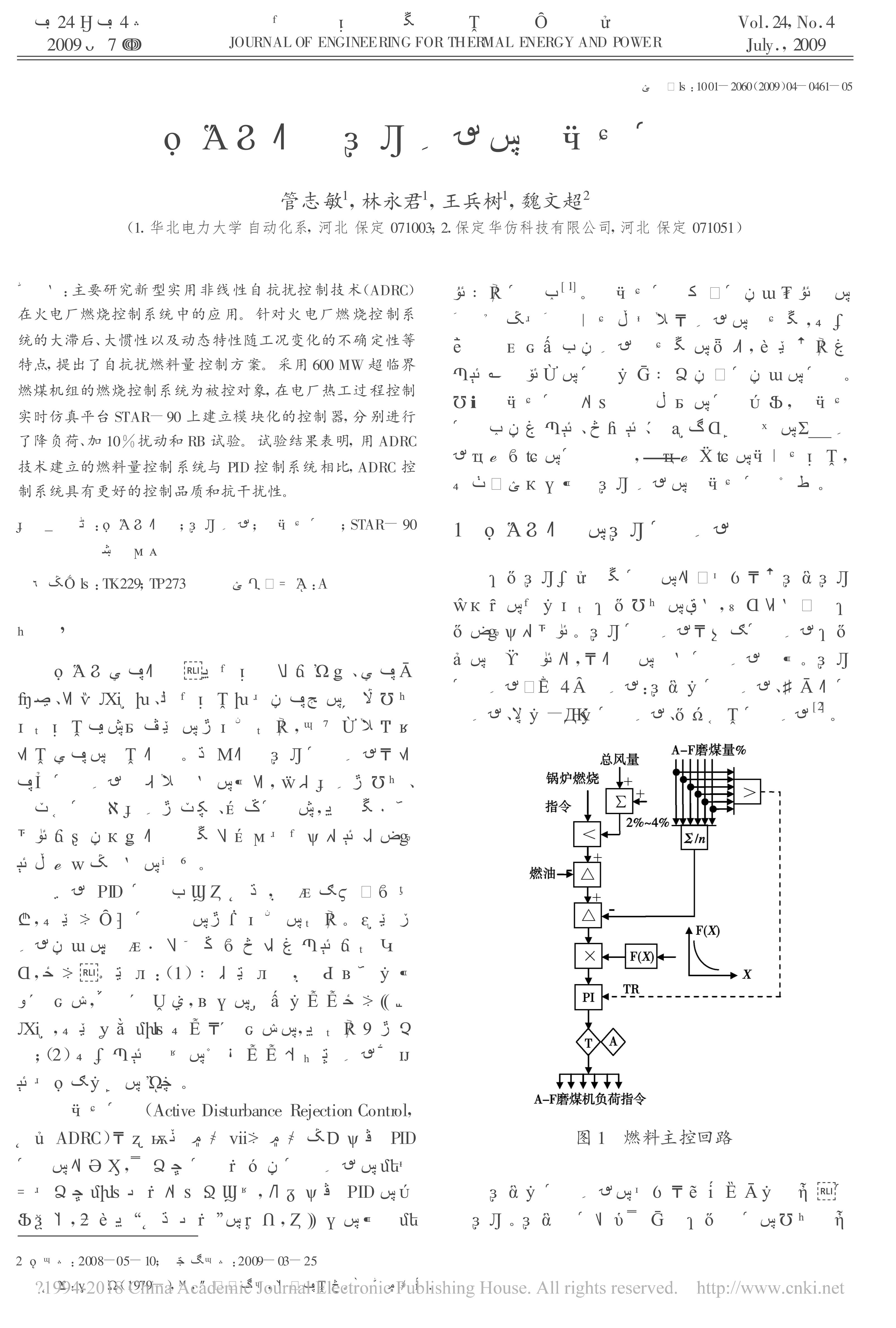 .超临界机组燃烧系统的自抗扰控制[J].热能动力工程,2009,24(4):