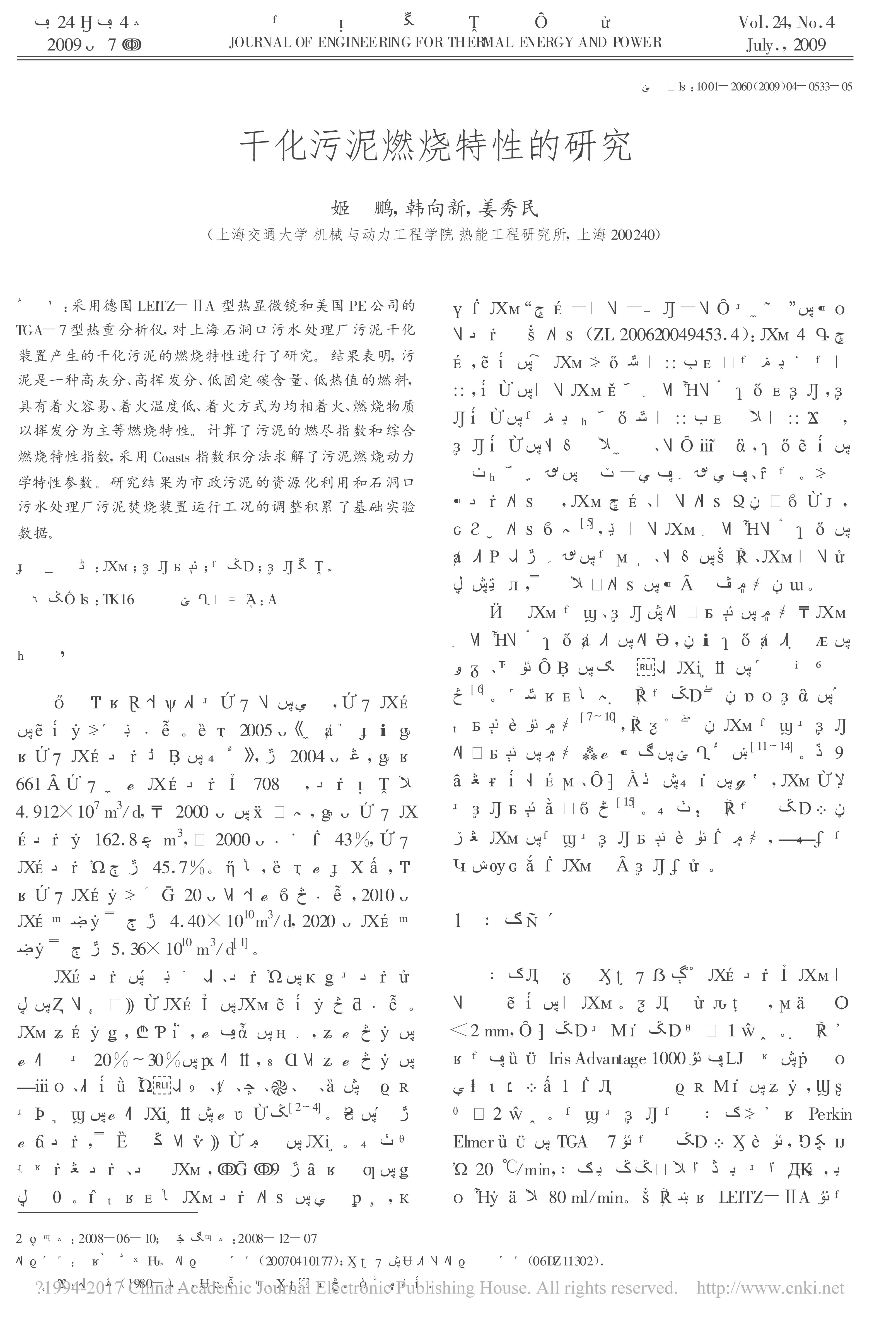 .干化污泥燃烧特性的研究[J].热能动力工程,2009,24(4):