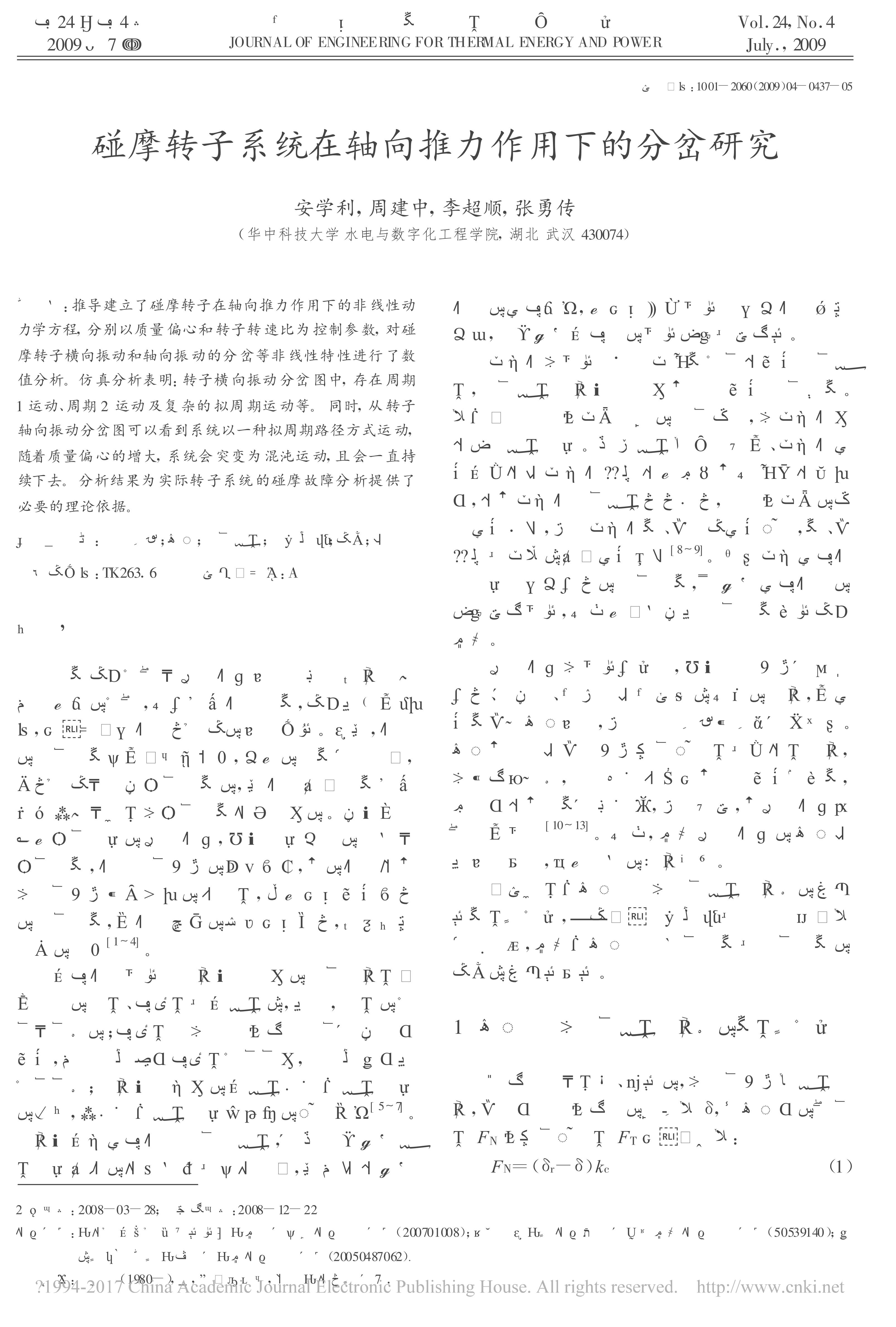 .碰摩转子系统在轴向推力作用下的分岔研究[J].热能动力工程,2009,24(4):
