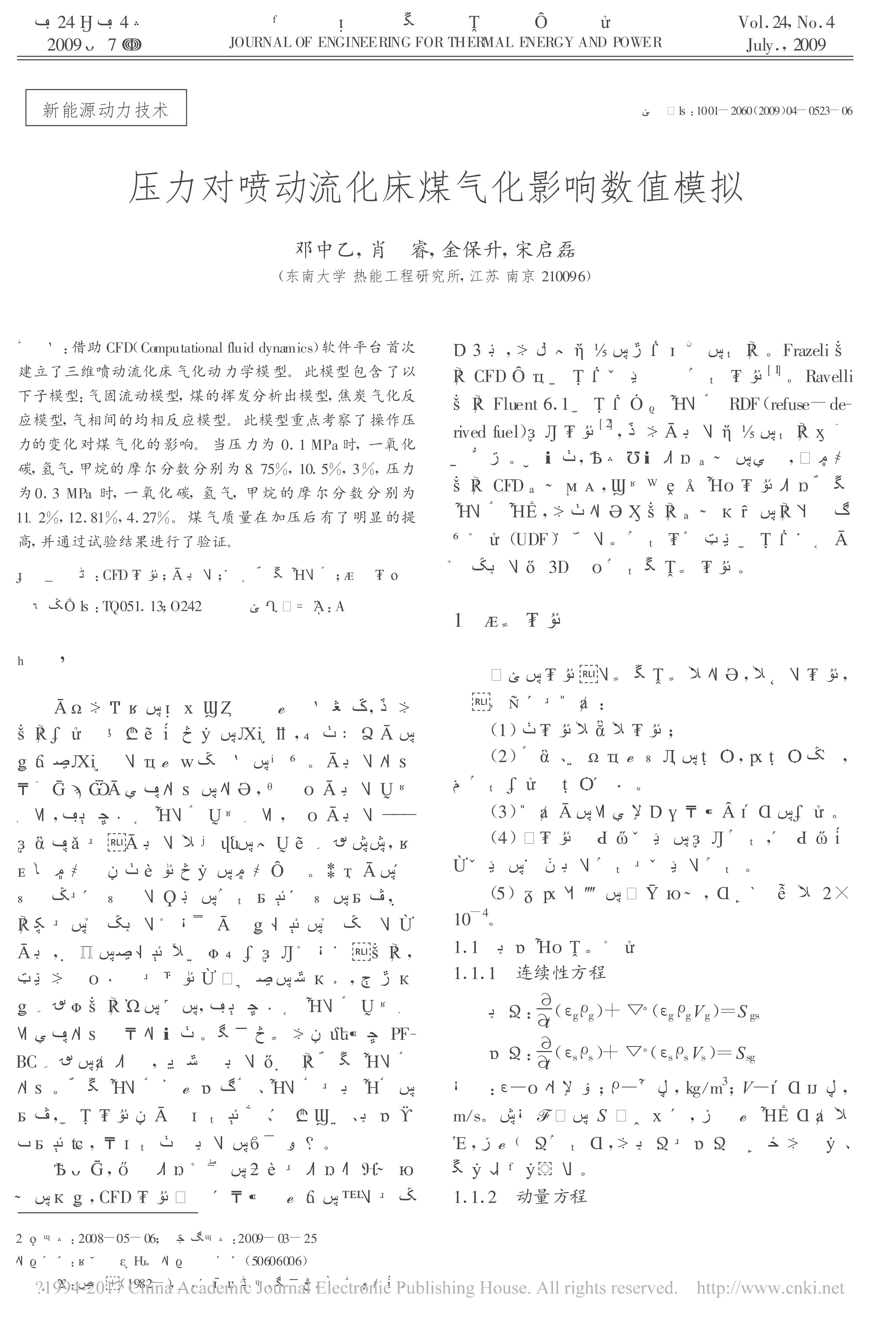 .压力对喷动流化床煤气化影响数值模拟[J].热能动力工程,2009,24(4):
