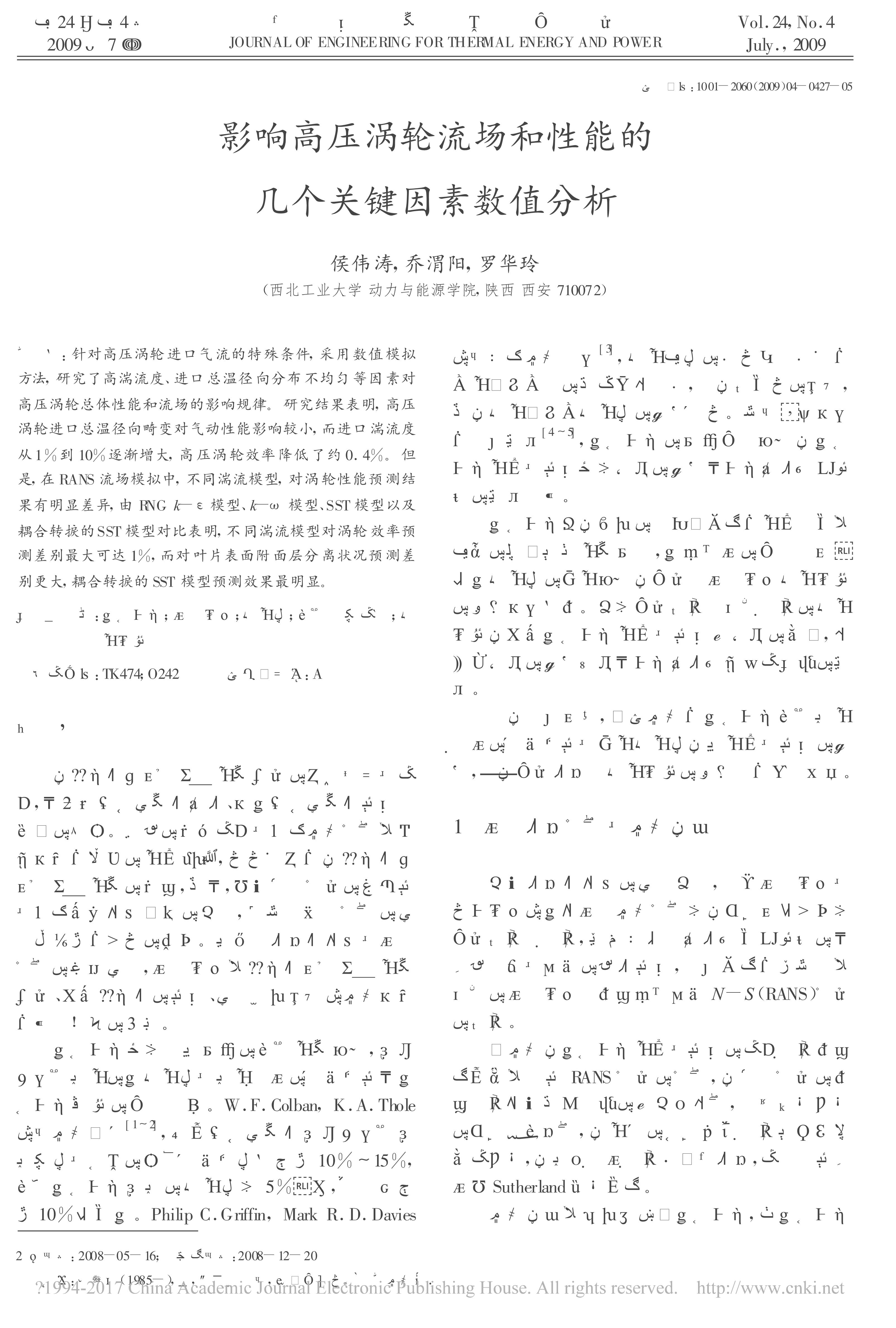 .影响高压涡轮流场和性能的几个关键因素数值分析[J].热能动力工程,2009,24(4):