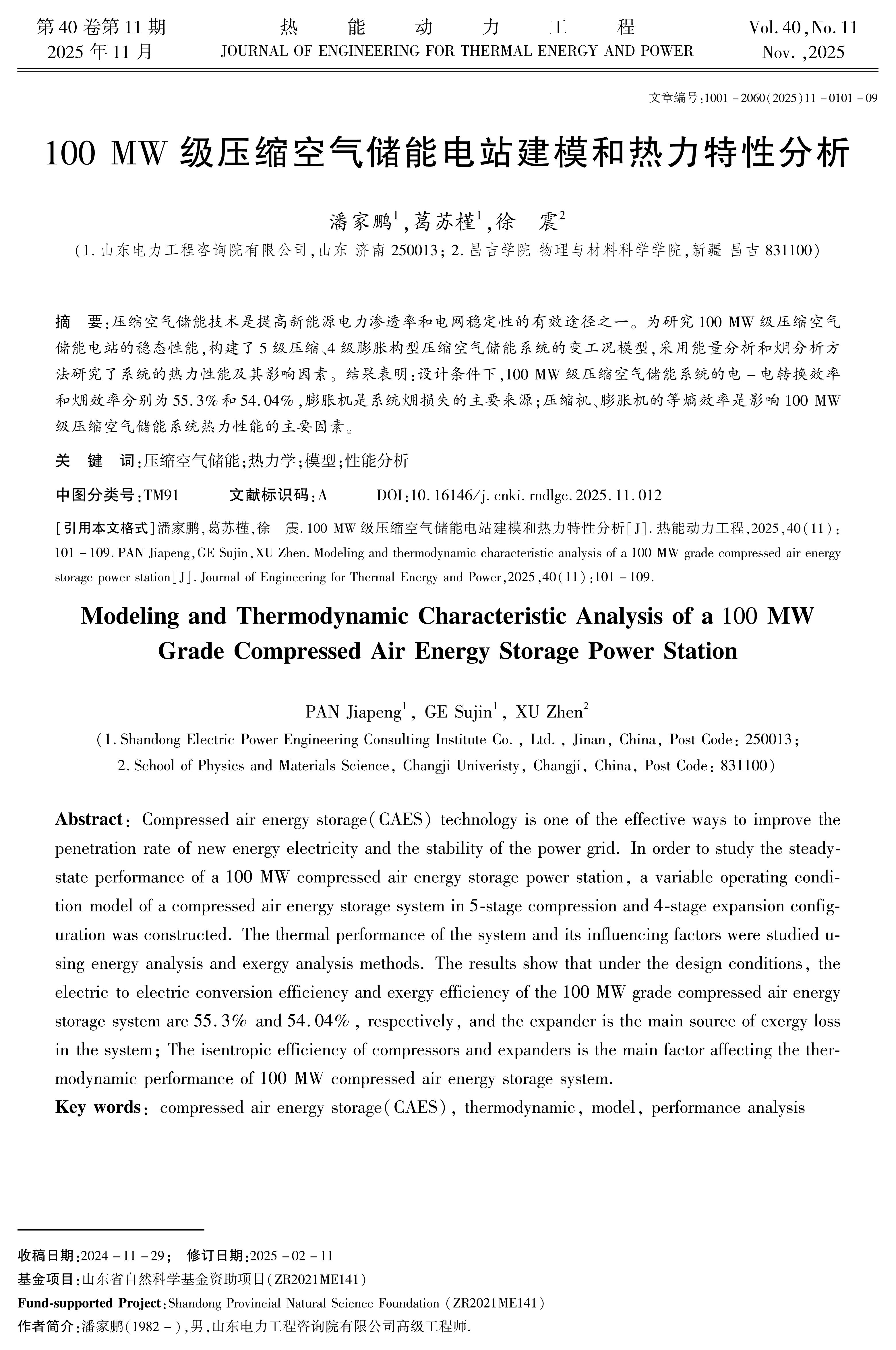 Modelling and Thermodynamic Analysis of a 100MW Grade Compressed Air Energy Storage System