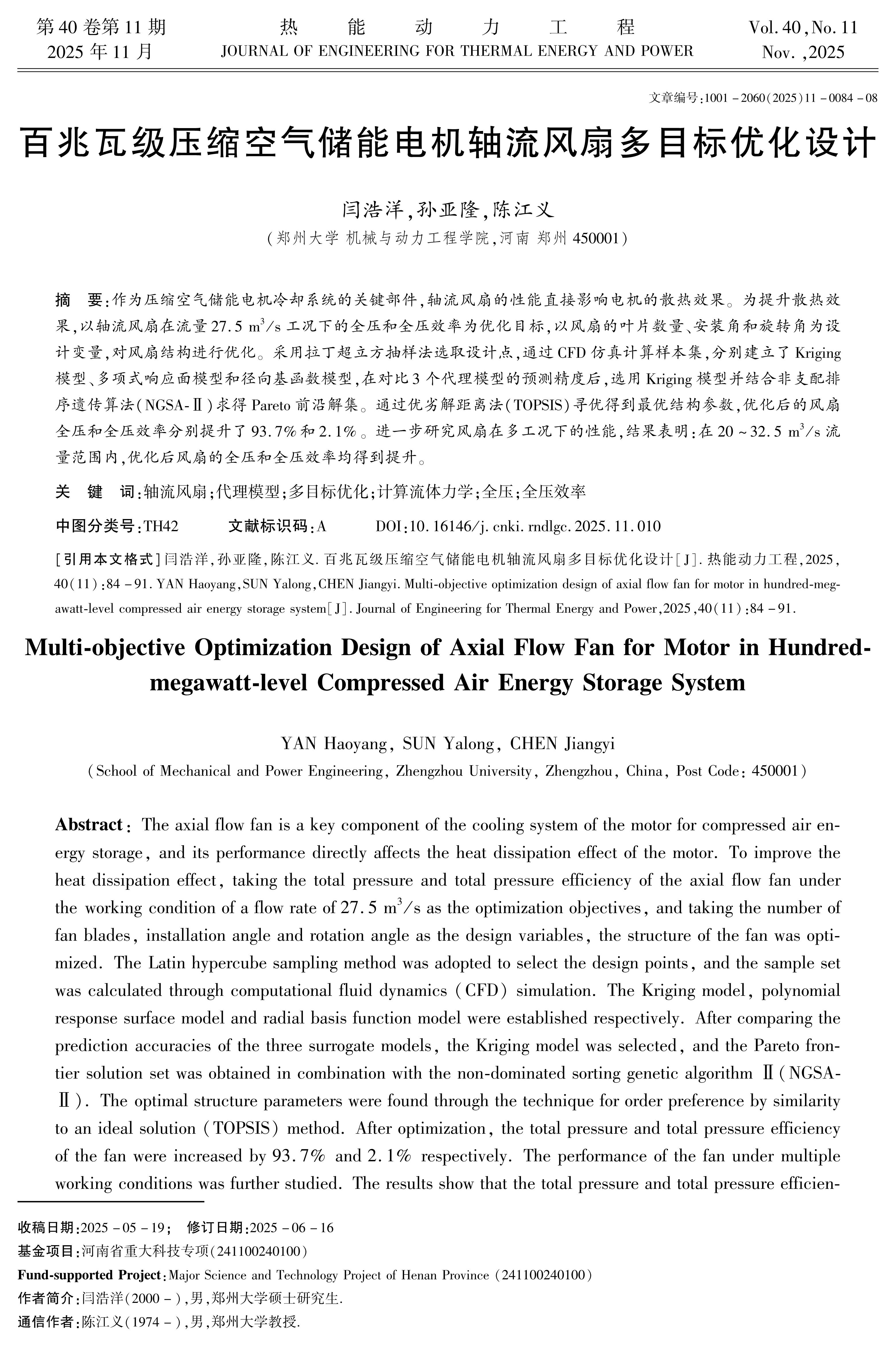 百兆瓦级压缩空气储能电机轴流风扇多目标优化设计